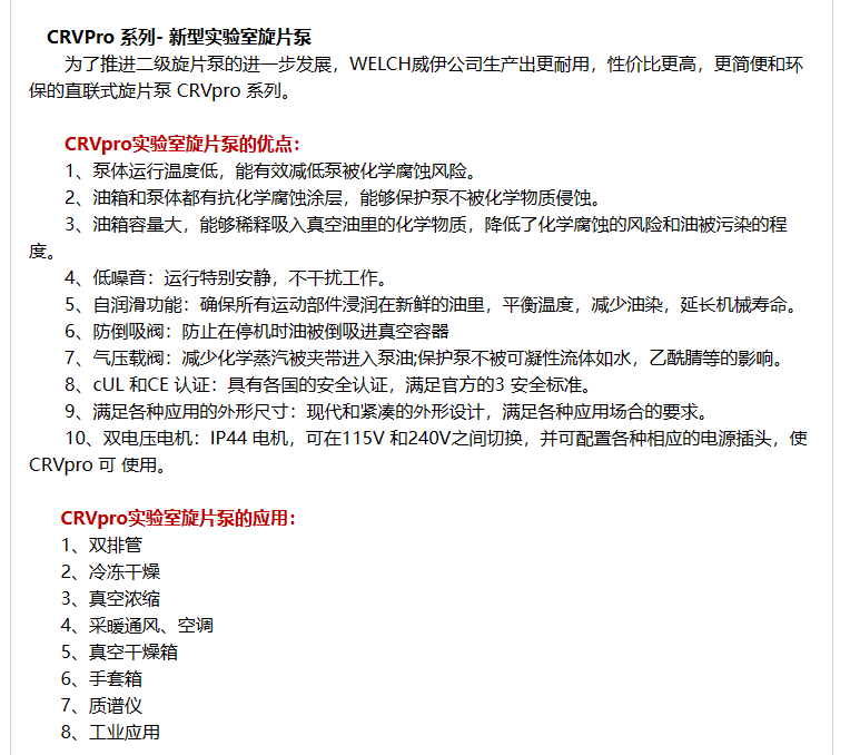 CRVPro2 新型實(shí)驗(yàn)室旋片泵 耐用 性價(jià)比更高 更簡便和環(huán)保的直聯(lián)式