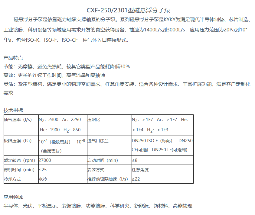 抽速2*10-7Pa真空泵1400L/s至3000L/s水冷式CXF-250/2301磁懸浮分子泵