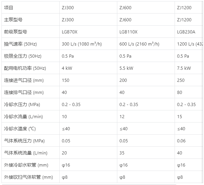 答:抽氣速率根據(jù)型號不同,分別為300 L/s、600 L/s和1200 L/s。