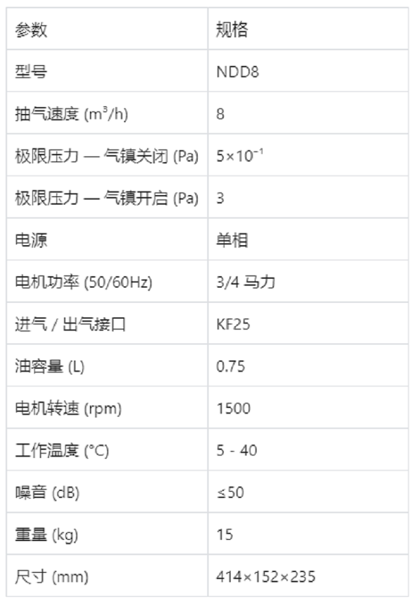 NDD8 兩級油旋片真空泵技術(shù)參數(shù)